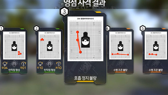 Target shooting is a shooting training conducted on trainees who have already learned how to align the target line, and shooting training is conducted for each distance. It consists of a distance of 25/50/100/150/200/250m, and depending on the scenario, 10 shots are fired at each desired distance.